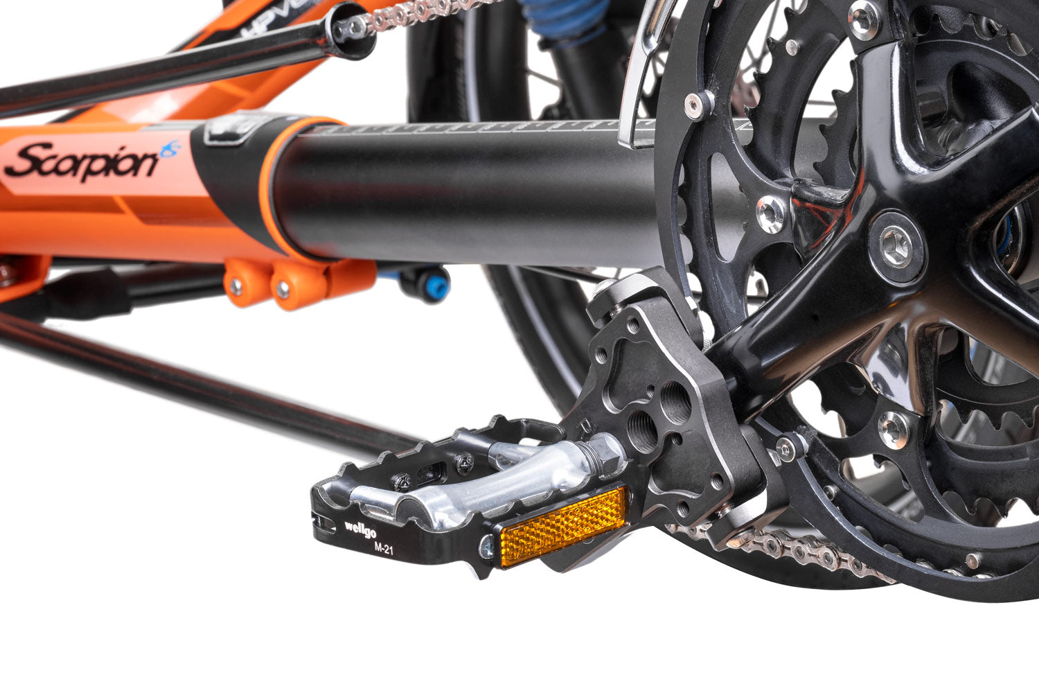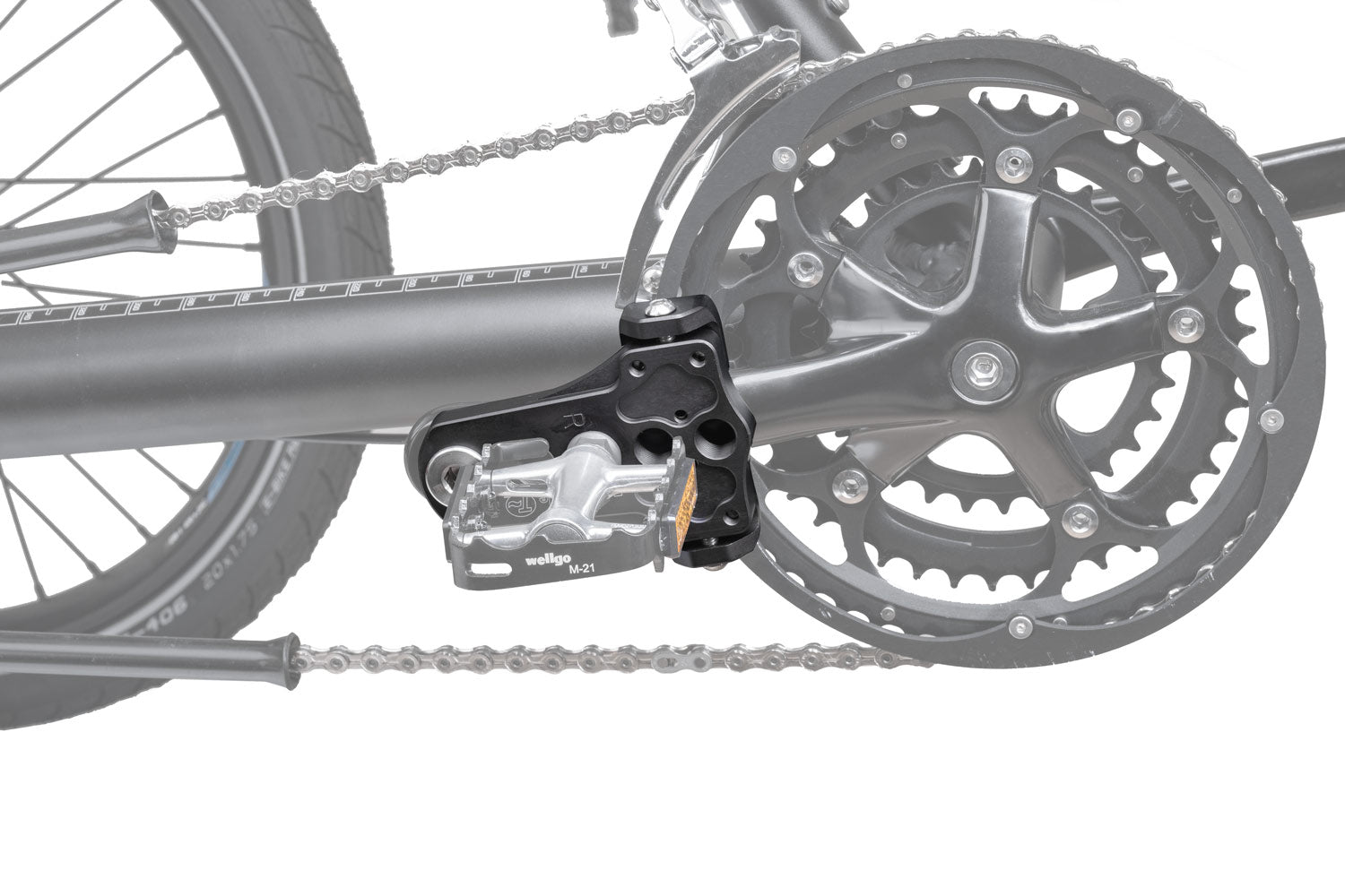 Viele Fahrräder und Trikes sind ab Werk mit 170mm oder 175mm Kurbeln ausgestattet. Diese sind großartig für großgewachsene und langbeinige Fahrer, aber für viele Menschen können sie auch zu lang sein. Mit dem T-Cycle Kurbelverkürzer kann die Kurbelarmlänge effektiv reduziert werden. Durch vier mögliche Pedalpositionen lässt sich herauszufinden, welche Kurbellänge am besten geeignet ist. Der Kurbelverkürzer kann auch zur Angleichung von unterschiedlich langen Beinen verwendet werden.